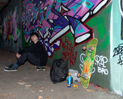 I like the full body portraits of Adrian holding his skateboard because I find it interesting the way different people naturally go to hold their skateboards and I think that this shows that. also the corners of the tunnels and the lights act as leading lines within the frame drawing your eye onto the subject.